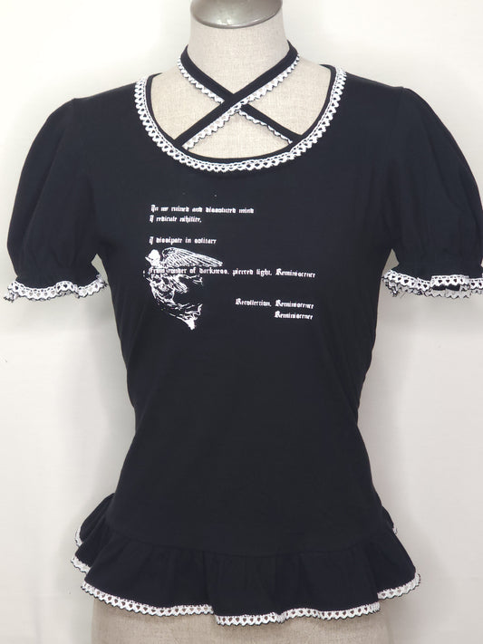 white x black crown print frill cutsew