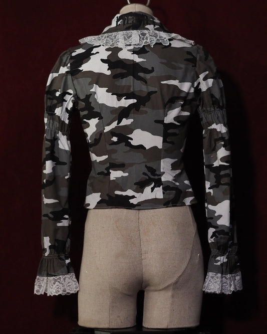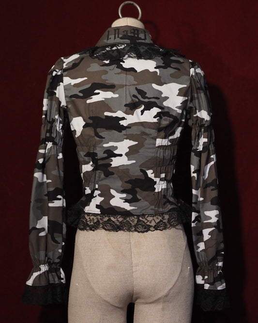 Urban Camo Long-sleeve Black Raschel lace Blouse