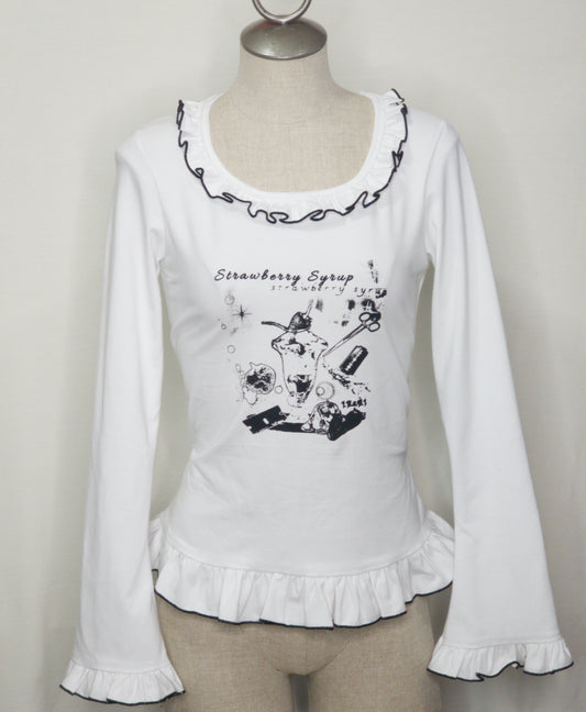 white x black longsleeve frill syrup cutsew