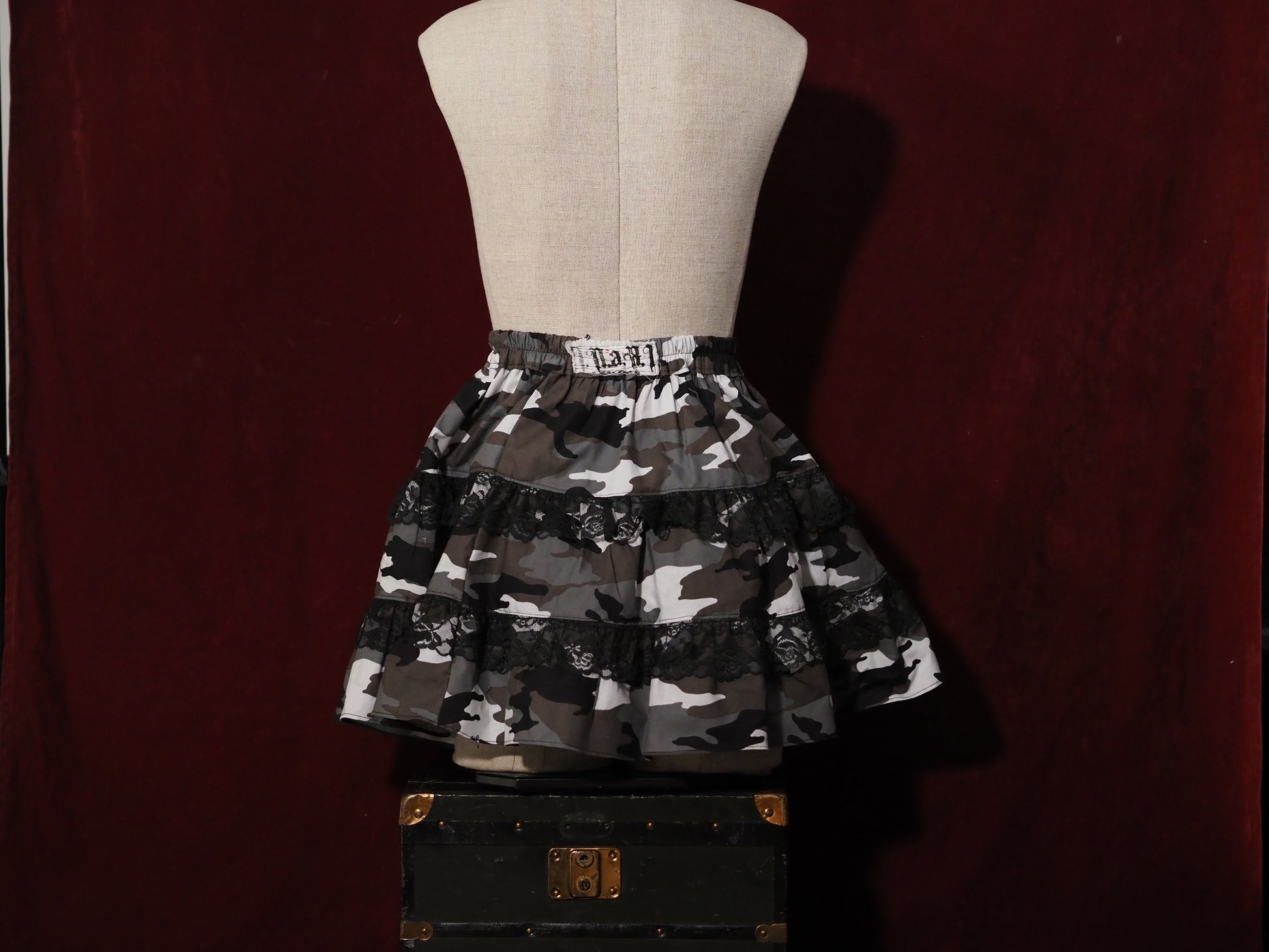 Urban Camo Black Raschel lace Tiered Skirt